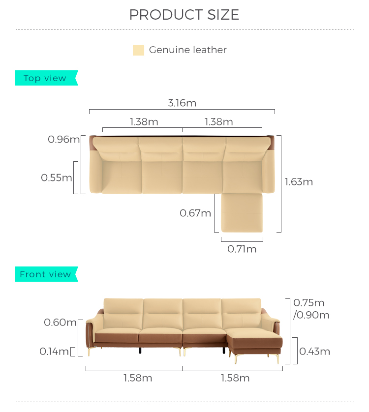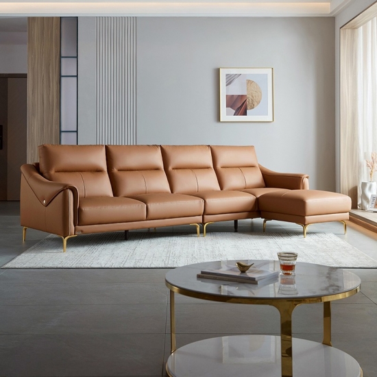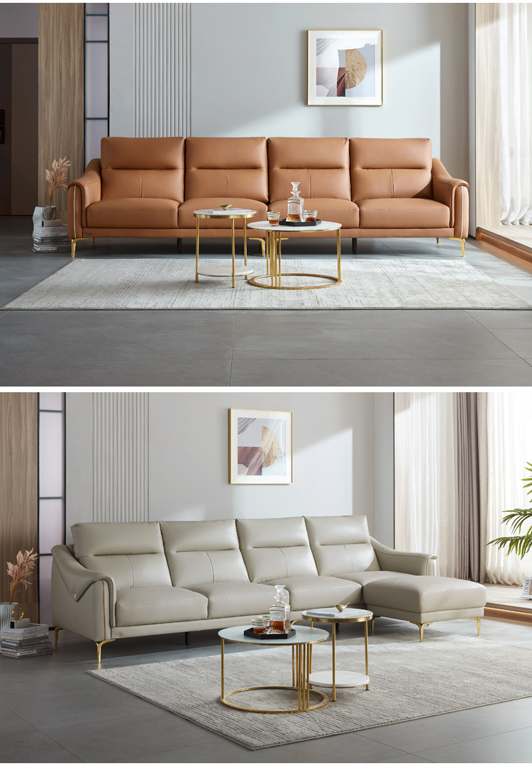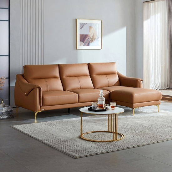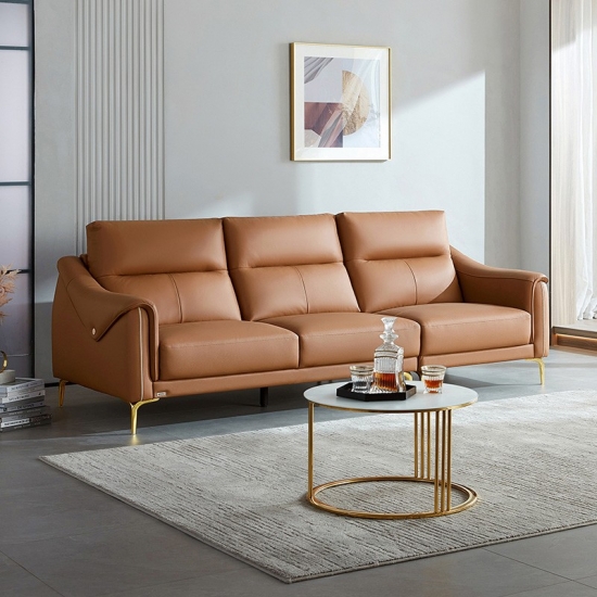 リビングルーム用オレンジ色ライト高級レザーソファ S200-A