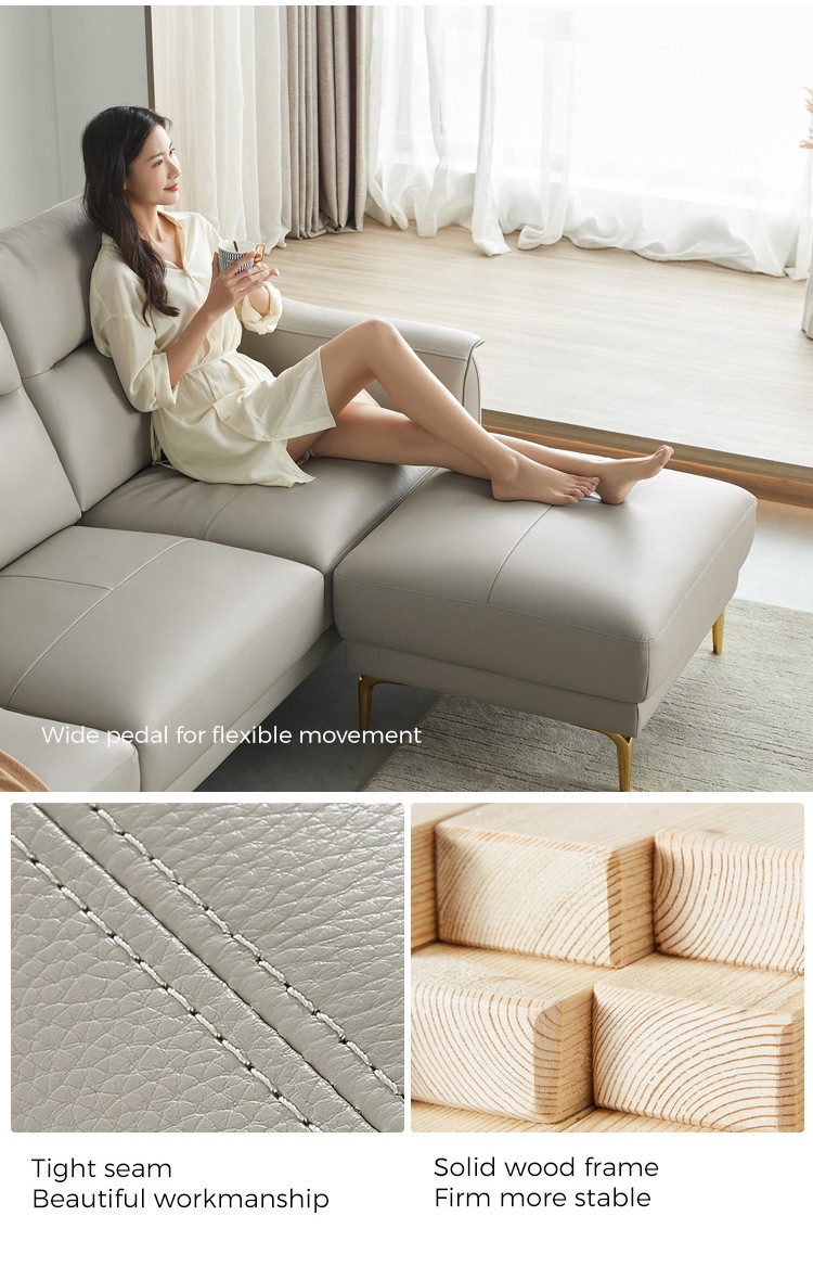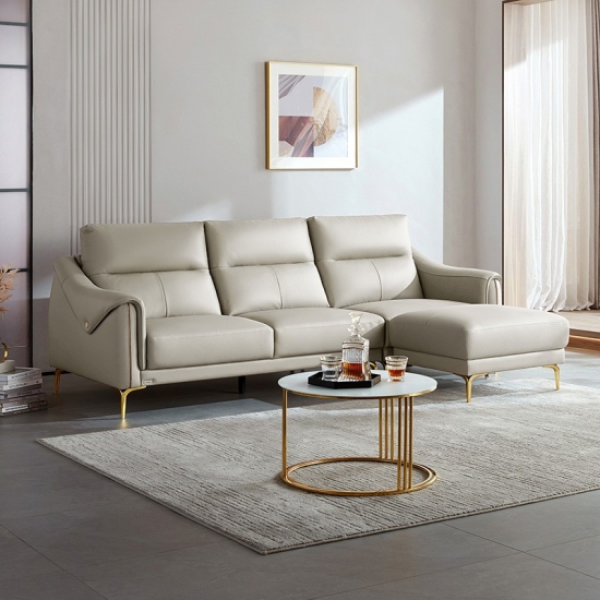 軽くて高級な革張りのソファを、それに合った家具や装飾品と組み合わせると、リビングルーム全体の雰囲気が高まります。豪華なエリアラグ、メタリックなアクセント、印象的な照明器具を取り入れて、統一感のある魅力的な空間を作りましょう。