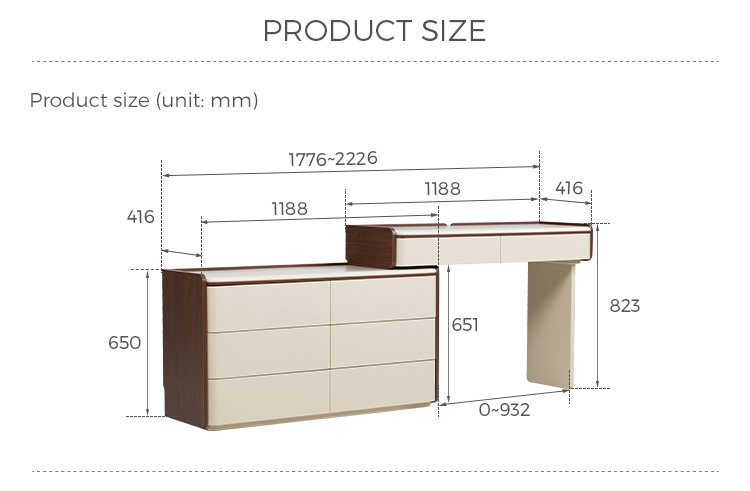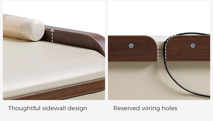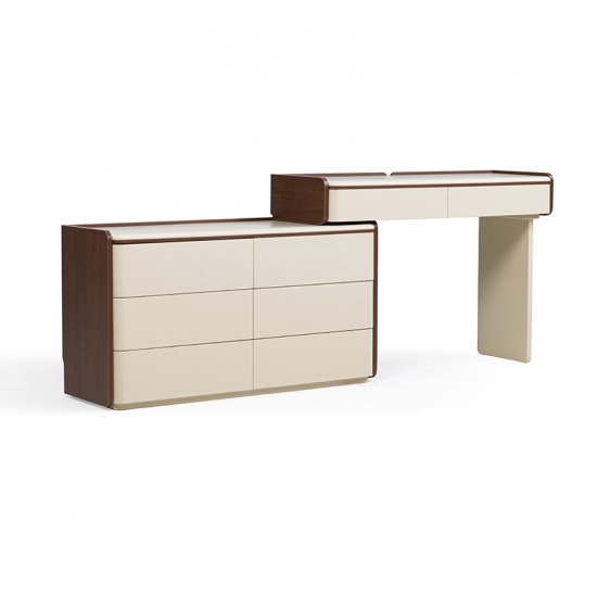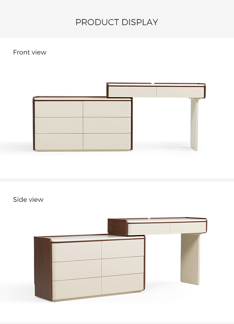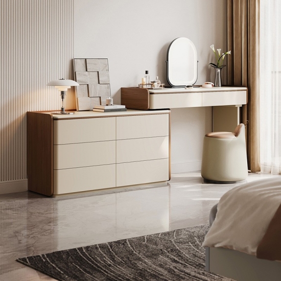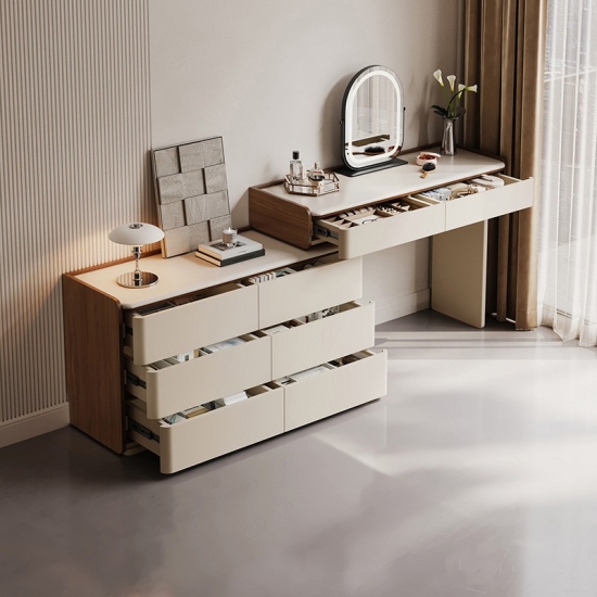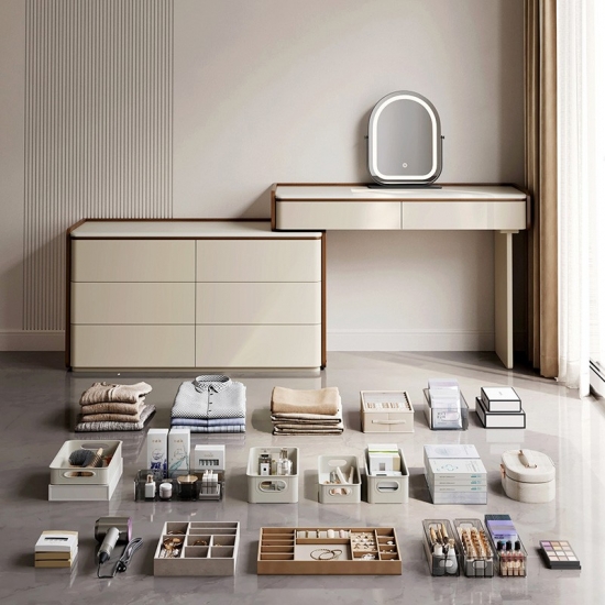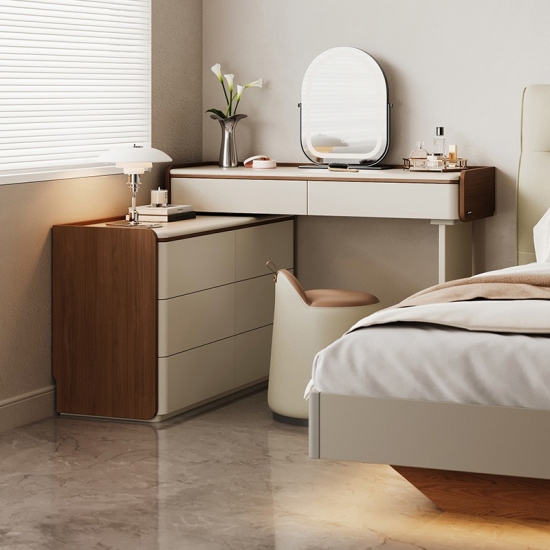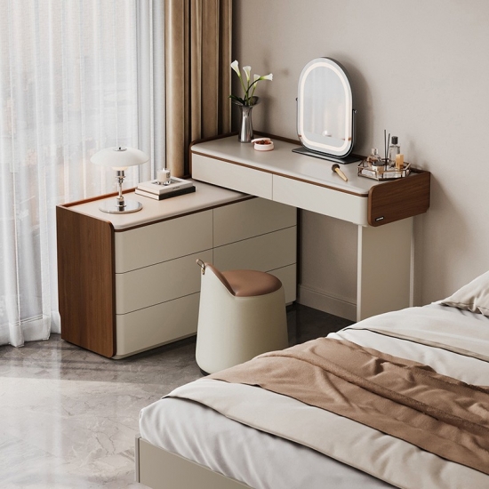 専用の化粧台:広々とした天板は、毎日のビューティールーティンに最適な空間です。香水、スキンケア用品、ジュエリーボックスなどをエレガントにディスプレイできます。