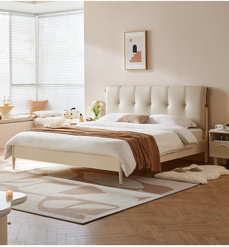 7ソフトデザインチェスターフィールドヘッドボードホワイトカラーベッドルームダブルベッドnu7a-a1