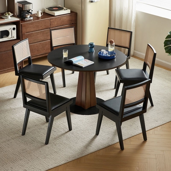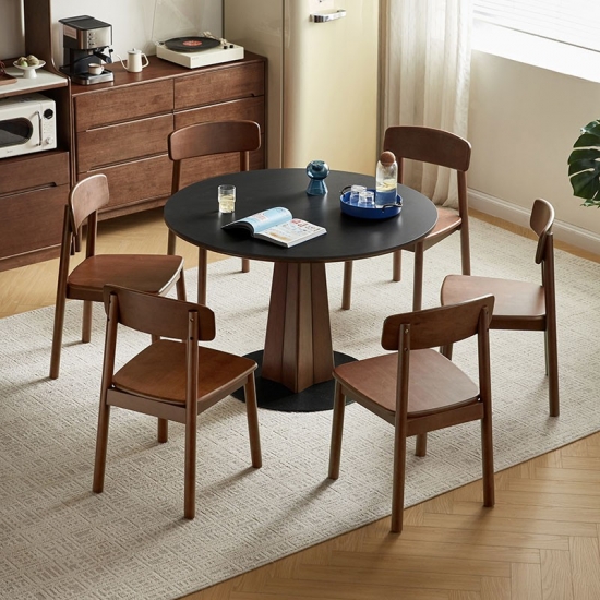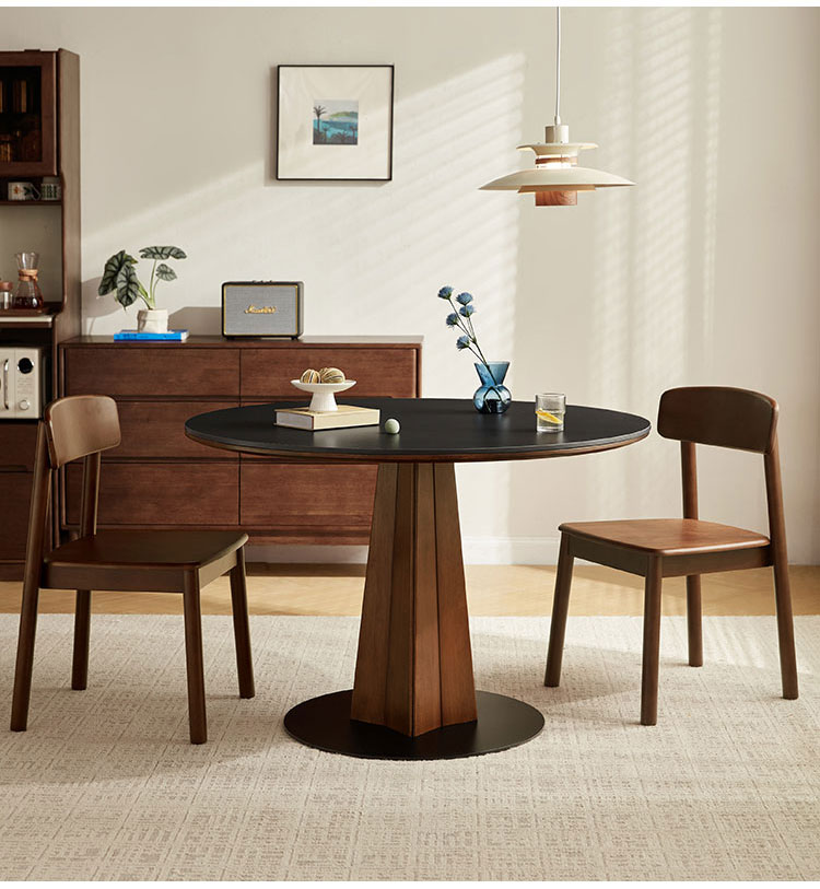 *丸いテーブルトップデザイン: 親密で会話が弾むダイニングの雰囲気を醸し出します。
