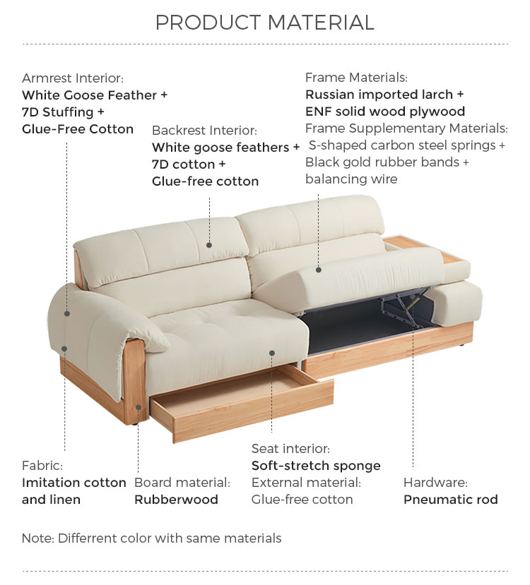 一体型収納コンパートメント: 長椅子またはベース内に目立たないように隠された広々とした収納スペースは、毛布、枕、本、その他の生活必需品を収納するのに最適で、散らからない環境を維持するのに役立ちます。