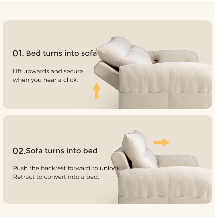 2. デュアルファンクション・コンバーティビリティ:両方の長所を体験してください。ゲストとの楽しいひとときに最適な、贅沢な3人掛けソファから、ゆったりとしたサポート力のあるベッドへと、あっという間に変身。ゲストが泊まるのにも便利です。
