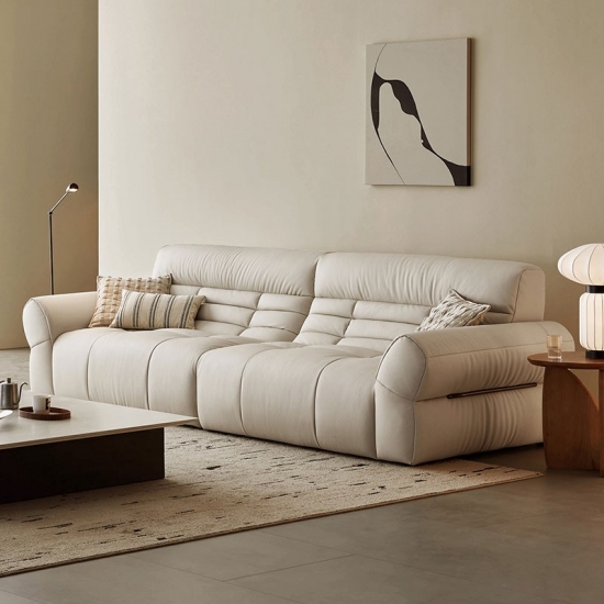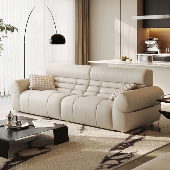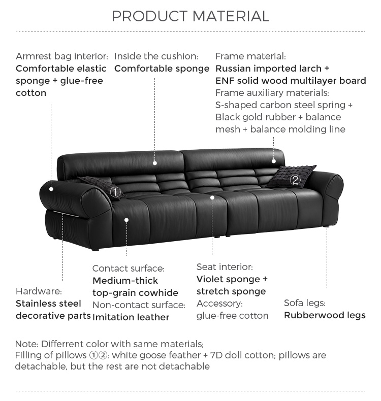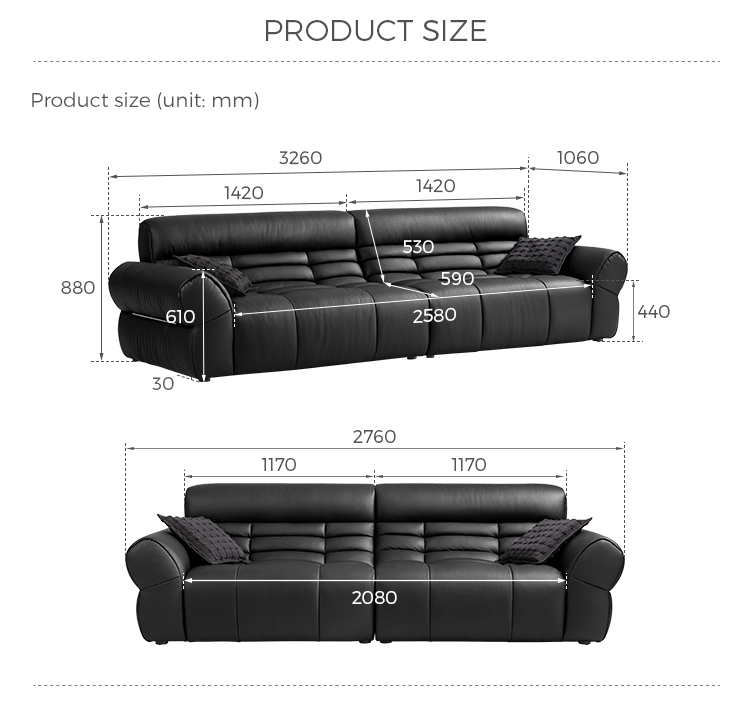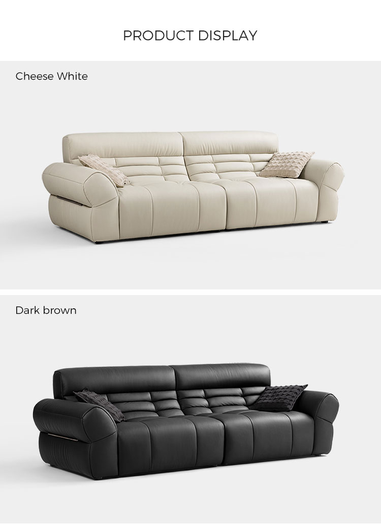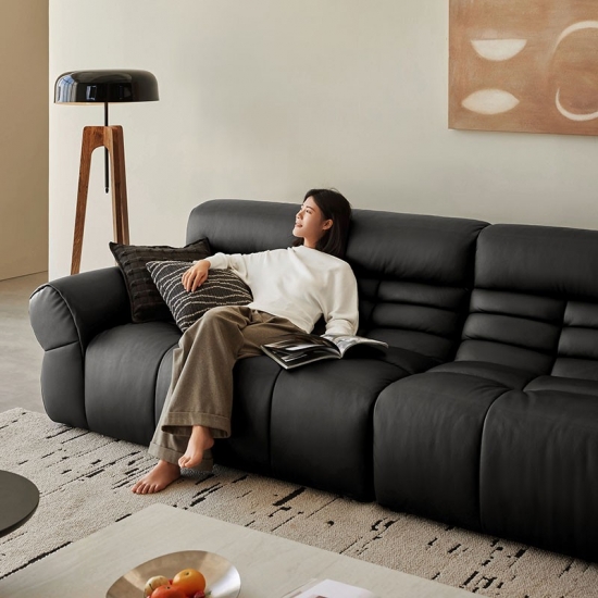 LINSY ブラックピアノキーレザーソファで、リビングスペースに大胆な存在感を添えましょう。クラシックな洗練さと現代的なデザインが融合したソファです。ピアノの鍵盤の滑らかなラインにインスピレーションを得たこのソファは、コントラストの効いたブラックのプレミアムレザーを印象的な交互に配置しています。深めのシートクッションと人間工学に基づいた背もたれが贅沢な座り心地を提供し、しっかりとしたハードウッドフレームが優れた安定性を保証します。