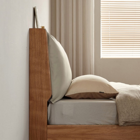 ウォールナット仕上げのレザー張りベッド(無垢材フレーム付き)LH133A3-A |