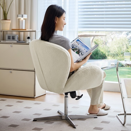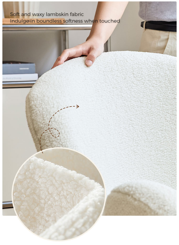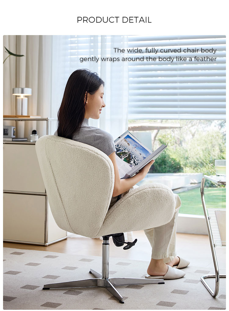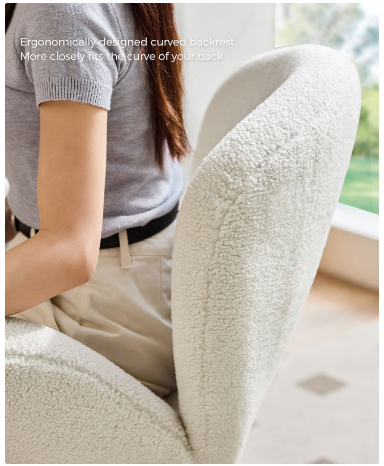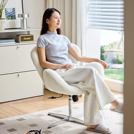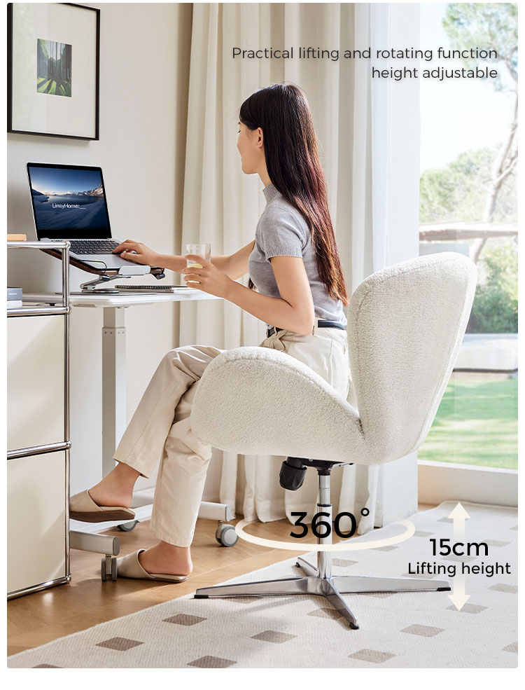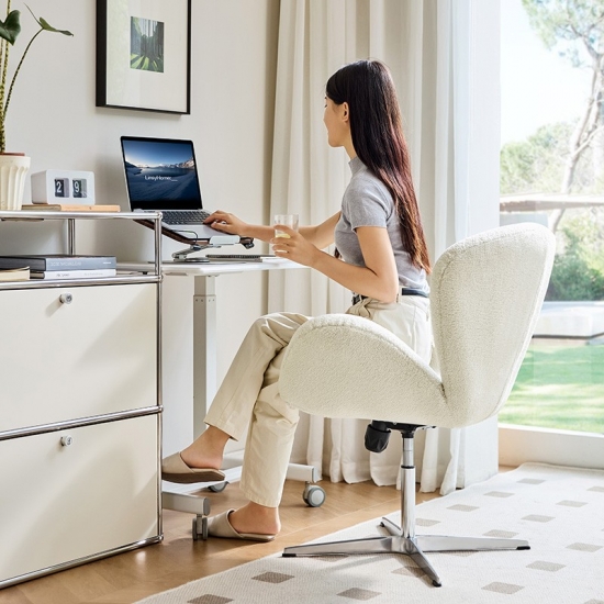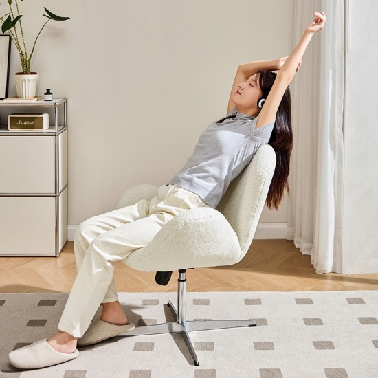 高品質のホワイトファブリック張りのこのチェアは、清潔感と洗練された外観を備え、お手入れも非常に簡単です。人間工学に基づいたデザインは、腰部をしっかりとサポートし、健康的な姿勢を促します。長時間のデスクワークも、格段に快適になります。