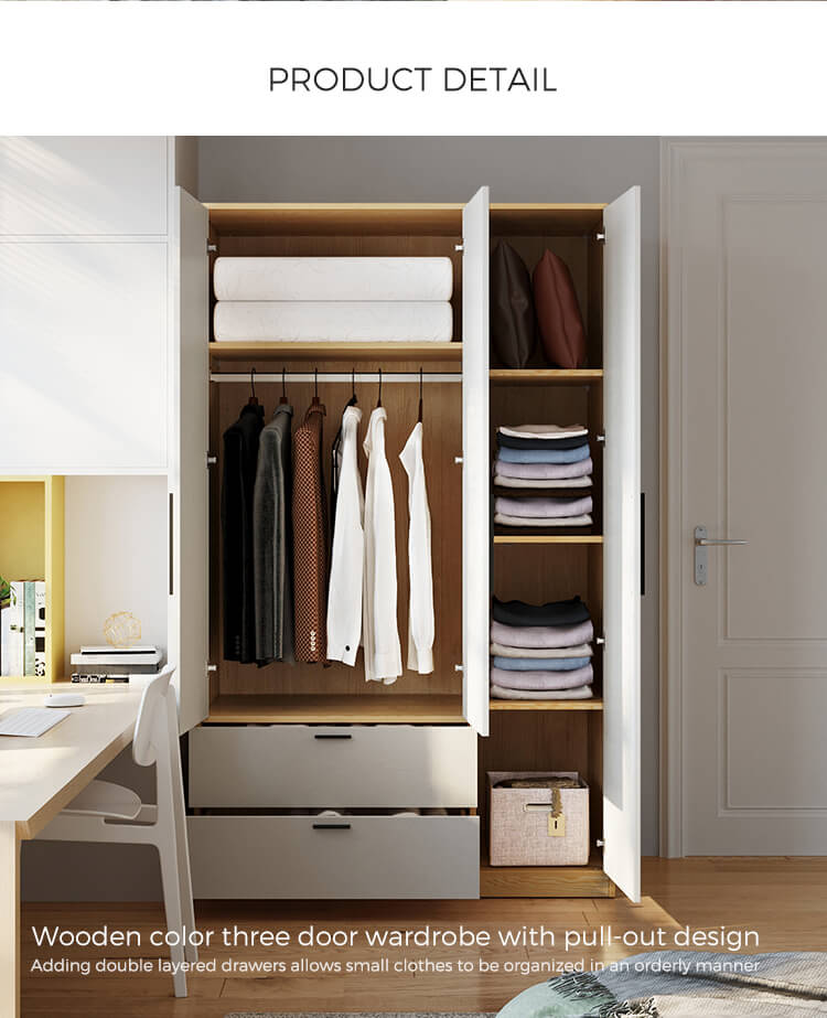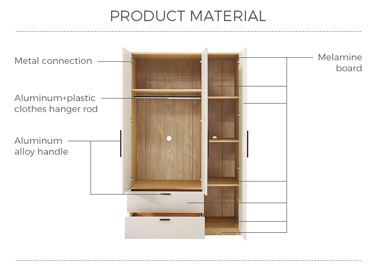 ホワイトカラーのシンプルなデザインのホーム3ドアワードローブ JC16D-A |