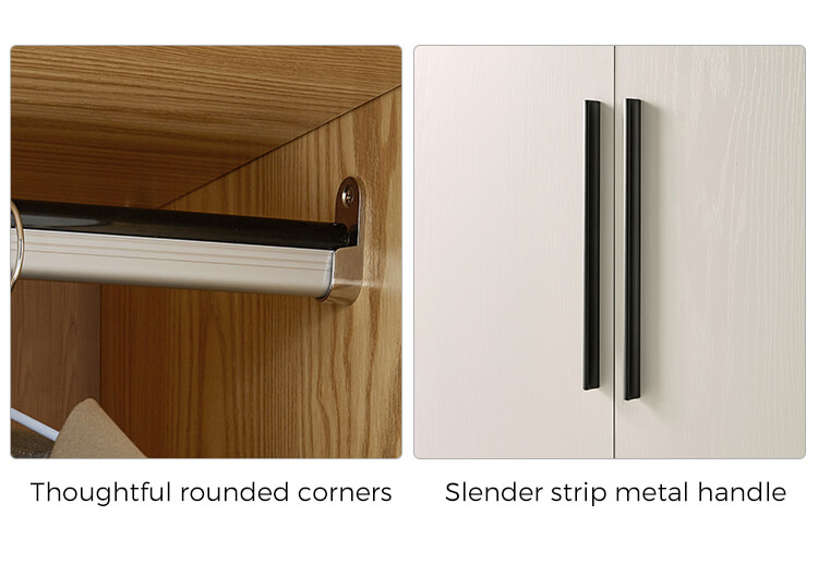 シンプルさと機能性が見事に融合したこの3ドアワードローブは、十分な収納力を備えながら、お部屋の美しさを高めます。清潔感のあるホワイト仕上げはどんなインテリアにもマッチし、時代を超えて愛されるアイテムです。